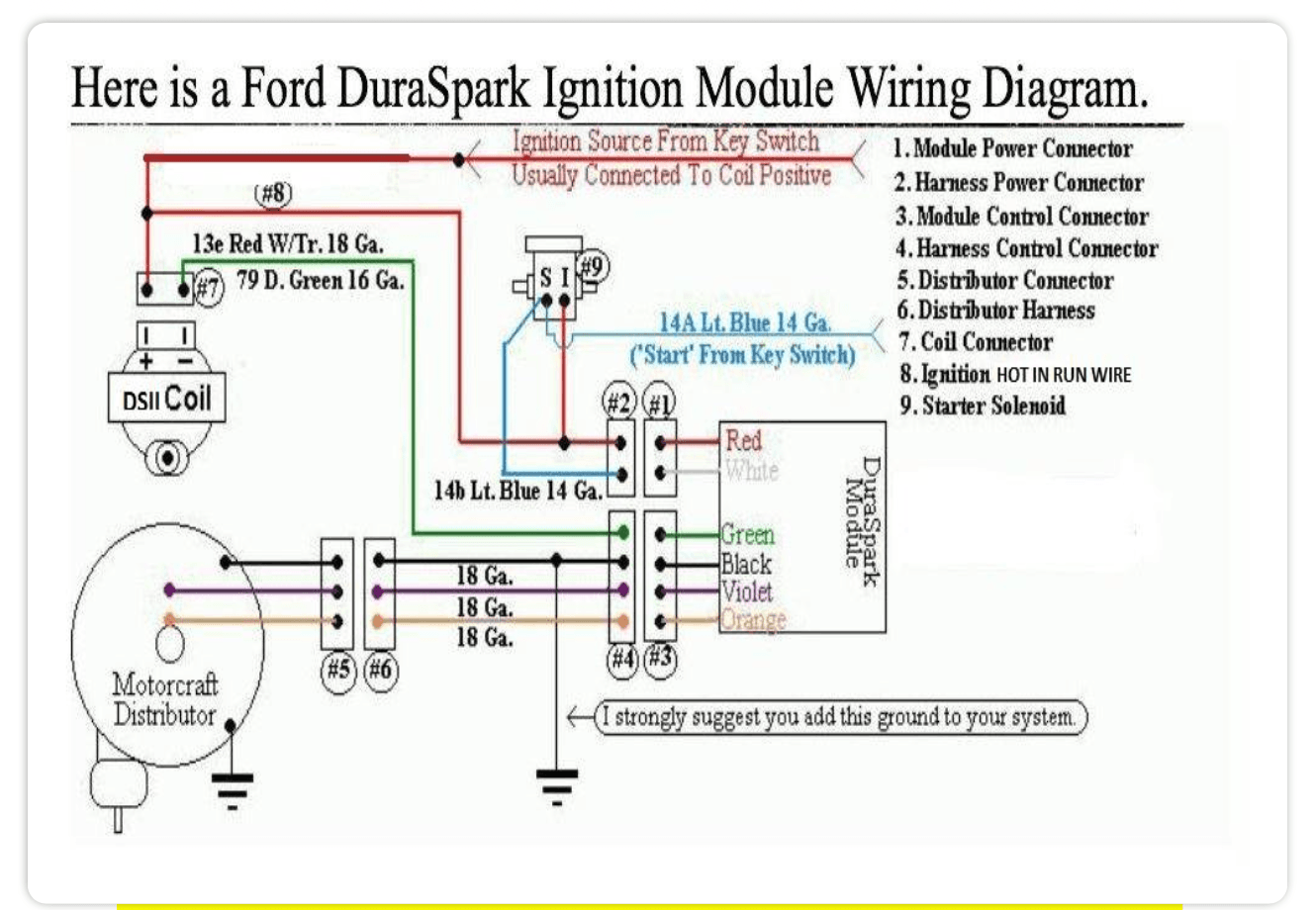 DURASPARK module wiring only. I have modified this schematic to OMIT the resistor wire to the positive side of the coil. This is how it should be installed on a DSII setup